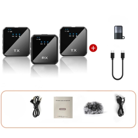 タイプCスマートフォン用ワイヤレスラベリアマイク2.4ghzデュアルラペルマイクのクリップライブストリームノイズキャンセルスクエアマイク