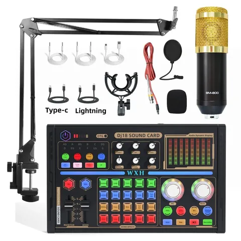 Dj18 लाइव साउंड कार्ड रिकॉर्डिंग 48v माइक्रोफोन कंडेनसर माइक्रोफोन उपकरण बाहरी ऑडियो मिक्सर लाइव स्ट्रीम माइक्रोफोन सेट